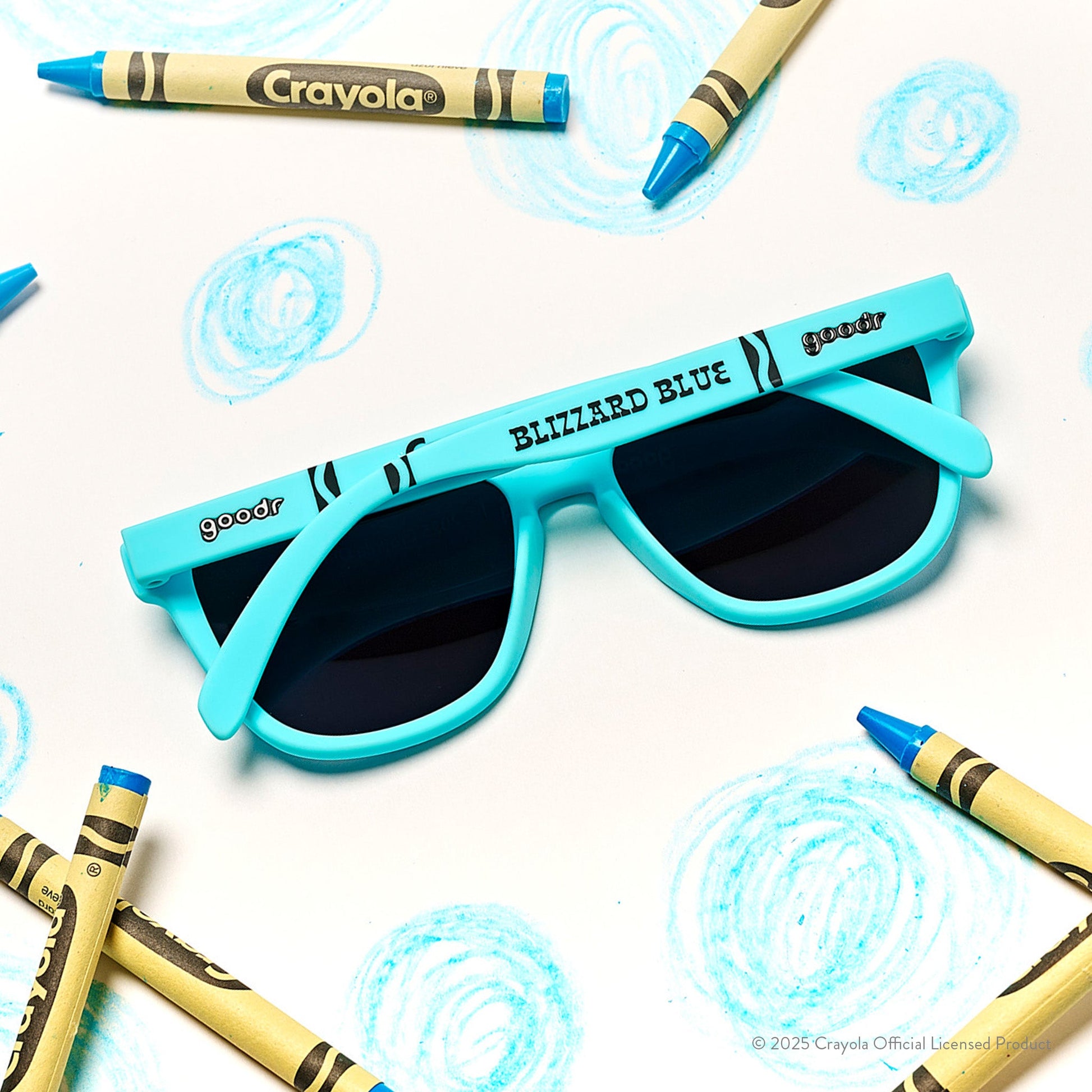 Blizzard Blue = cool, calm & a little chaotic. We channeled the retired color's energy into limited-edition shades with blue reflective lenses & nostalgic Crayola packaging. It's like diving into a snow day where school’s canceled & your only job is building the world’s best fort out of every cushion & blanket in the house, then wondering why your parents are so mad when they come home.