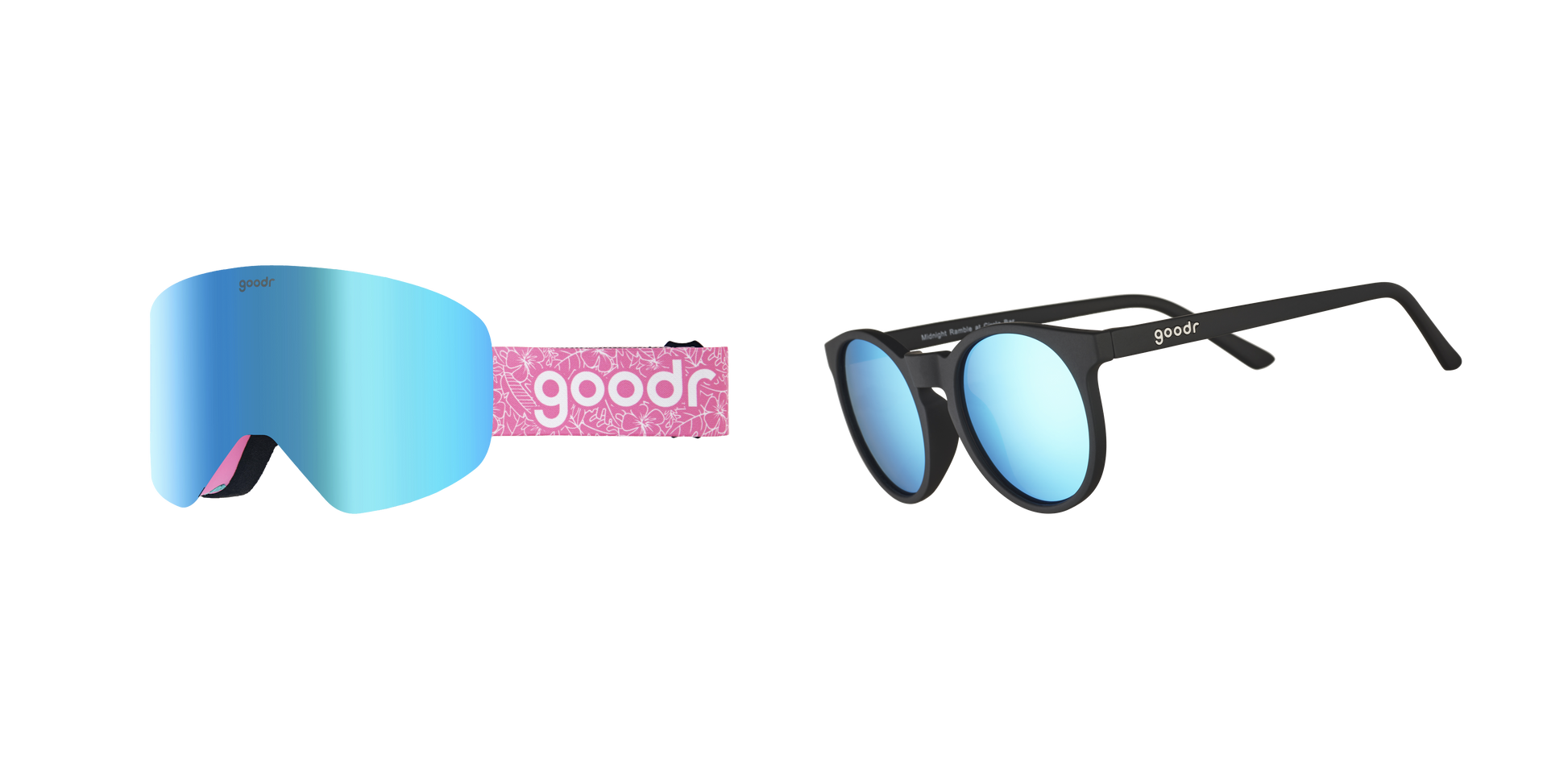 Embrace your wild side on the slopes with Bunny Slope Dropout Snow Gs, hot pink goggles with blue lenses that bring the hype. Keep the good vibes going and round out your day (literally) with perfect circle frames, Midnight Ramble At Circle Bar. These black frames with blue reflective lenses will have you channeling your inner hipster while you sip a hot toddy at The Circle Bar.